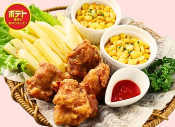 鶏の唐揚げ4個+コーンバター(ハーフ)2個+フライドポテトM(ハーフ)